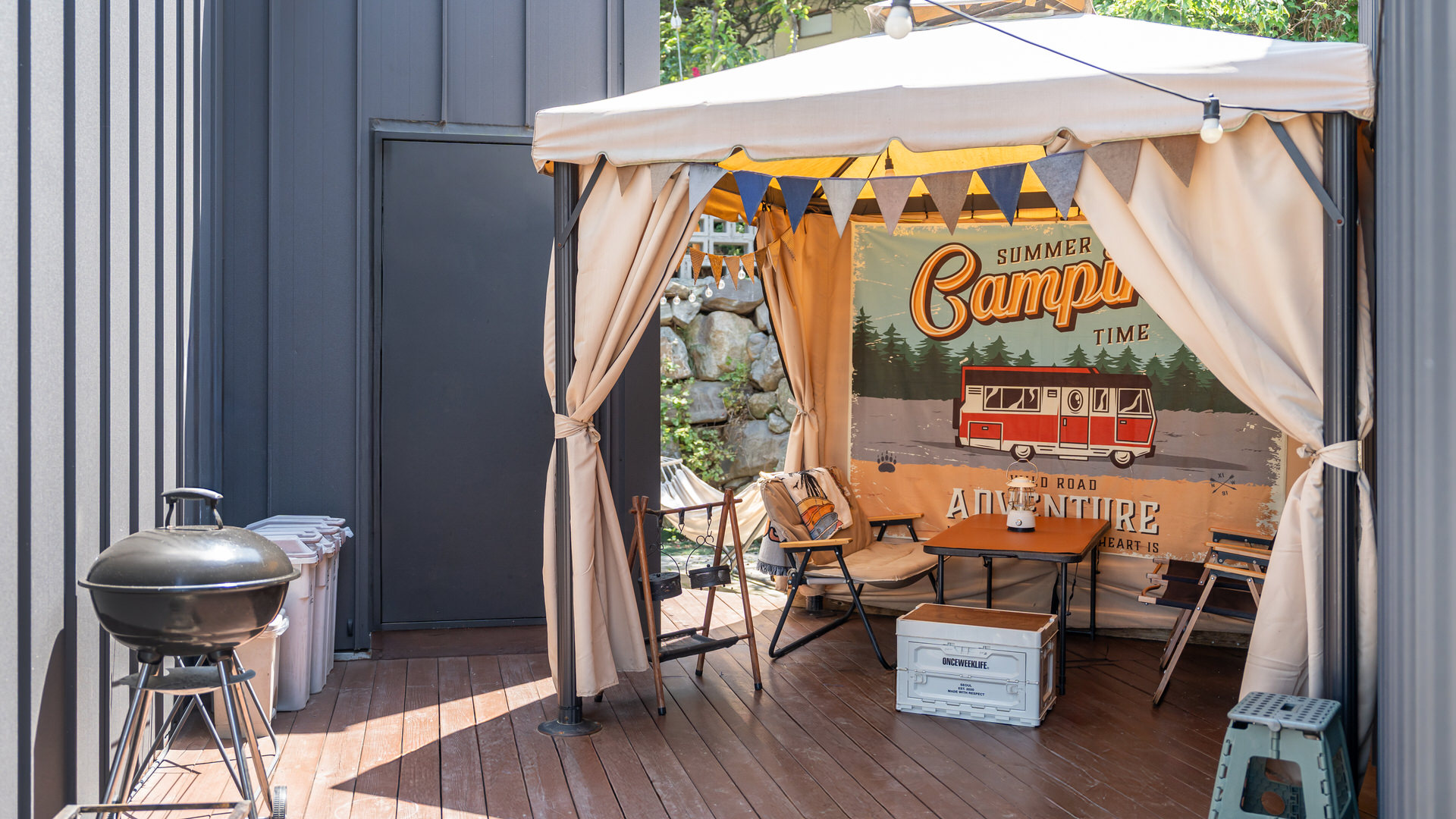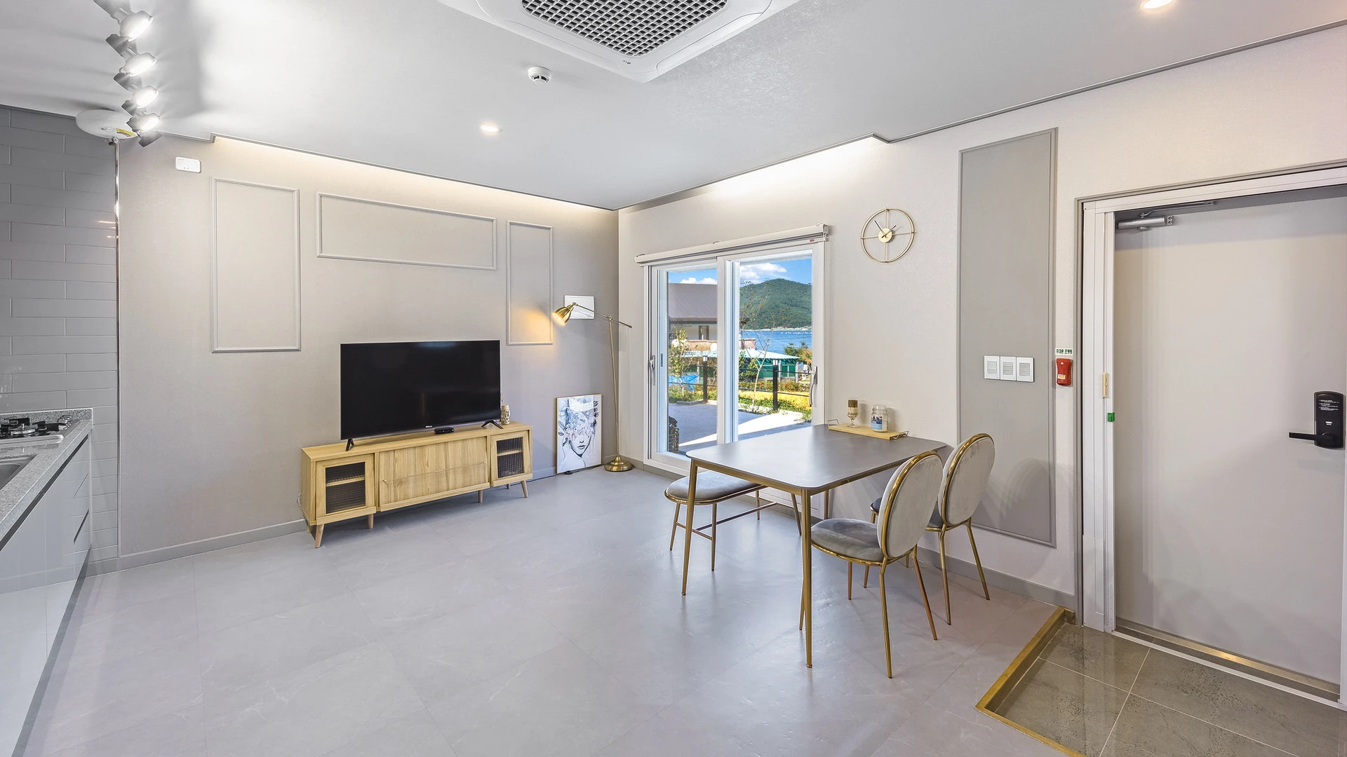 - 집기품목 : 커피포트, TV, 금연, 냉장고, 린스, 바디워시, 샴푸, 에어컨, 와이파이, 침대방, 타월, 인덕션, 전자레인지, 취사시설/도구, 화장대, 드라이기, 전기밥솥, 개별바비큐, VOD, 남녀공용, 욕실용품